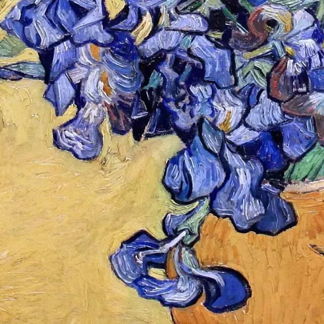 鸢尾花本是一种很平凡的植物,但梵高赋予它精彩的形象与色彩以及永恒的生命力,这是一生浸在痛苦与无奈中度过的画家对大自然的赞美,是对美好生活的向往。他画的鸢尾花是那么的可爱,甚至有人认为它们比真正的花还美,还真实。