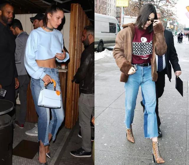 Bella Hadid身上这条拼贴牛仔裤就来自Re/Done。
