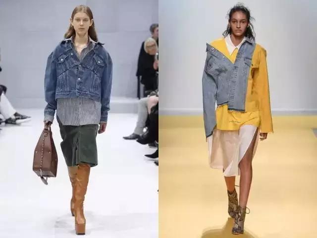 用不同颜色的牛仔面料拼接在一块,有个性时髦度倍增。