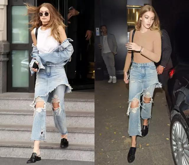 Gigi Hadid对破洞极其痴迷,她最近都是破洞牛仔裤和外套加身。