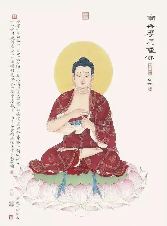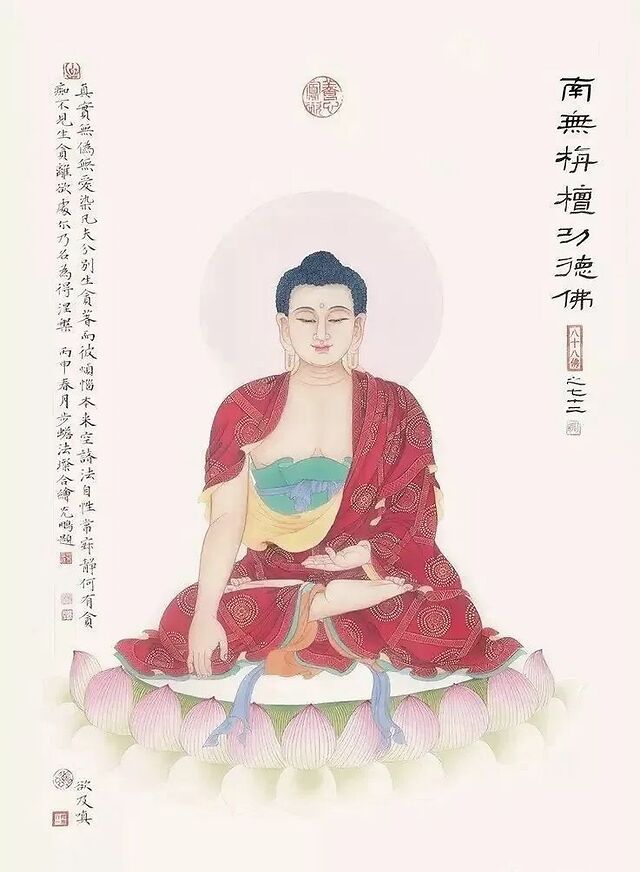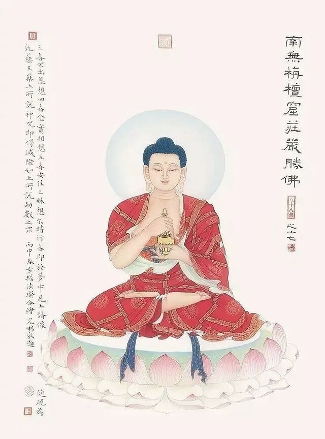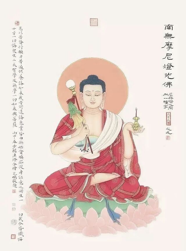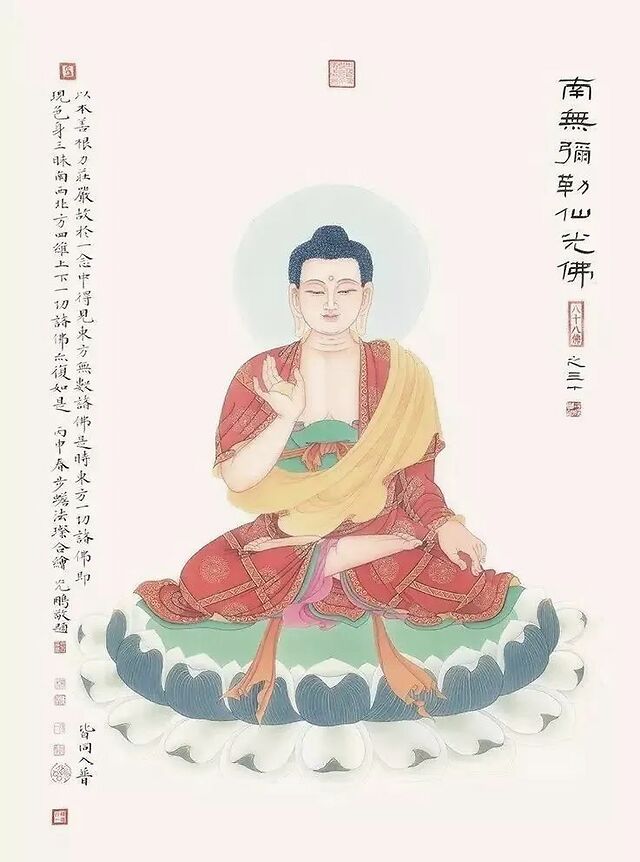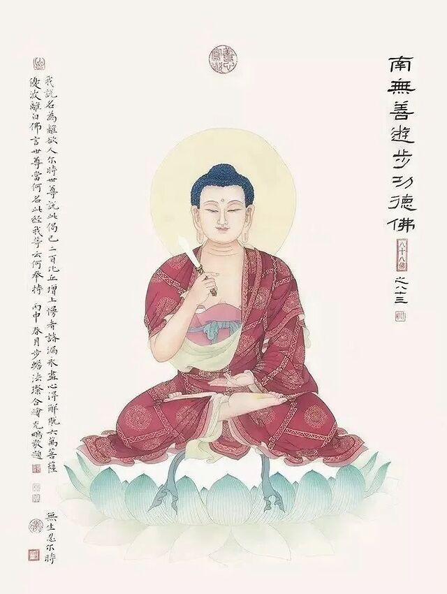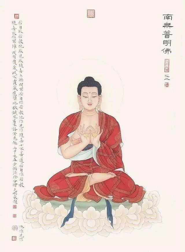 【德念佛、善名称功德佛、红焰帝幢王佛,此三如来,法喻表显】