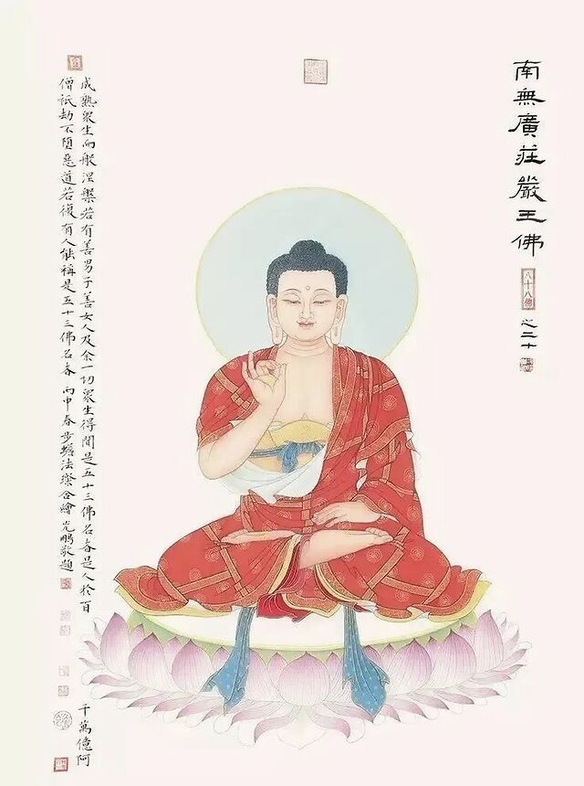 广庄严王者,谓如来色相,万德庄严,故称为广,无量劫来,自在安然,不为物转,故名广庄严王也。