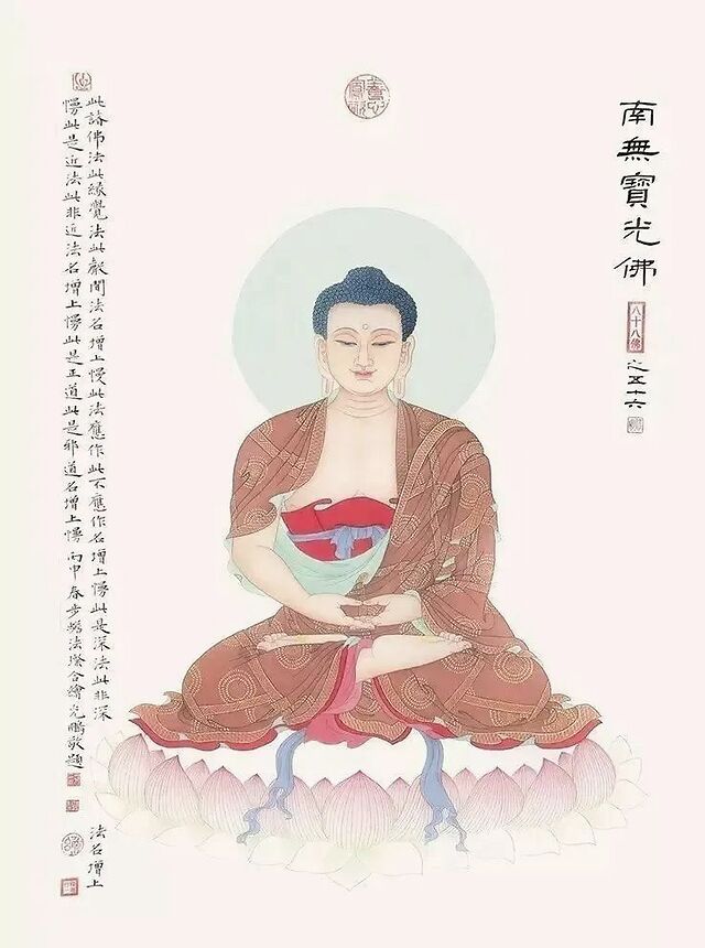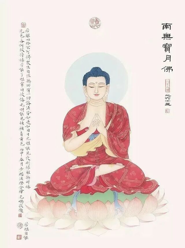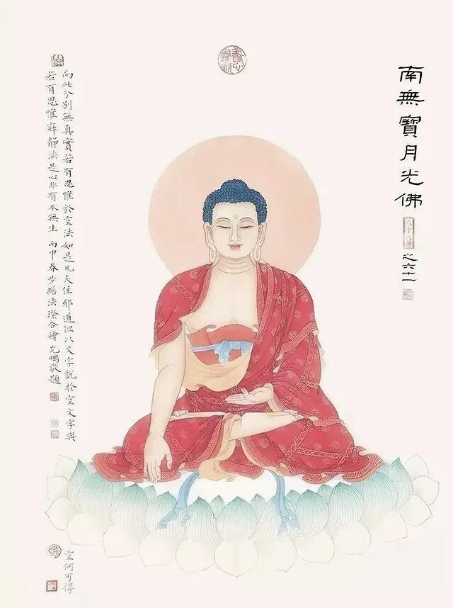 宝月光者,宝,体也,以表法身;月,相也,以表解脱;光,用也,以表般若。体相用显,故名宝月光也,比喻如来功德佛身。