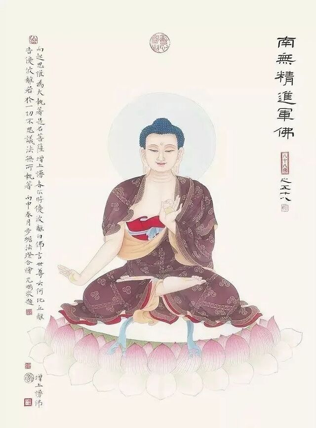 精进军者,谓世军勇猛精进,能却怨敌,如来为大法将,降伏魔军,故名精进军也。
