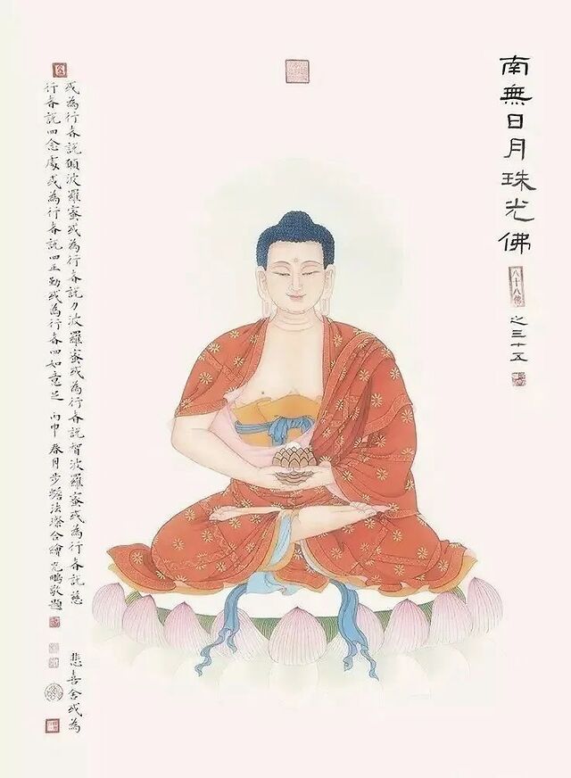 【日月光佛、日月珠光佛、慧幢胜王佛、狮子吼自在力王佛、妙音胜佛,此五如来,法喻表显】