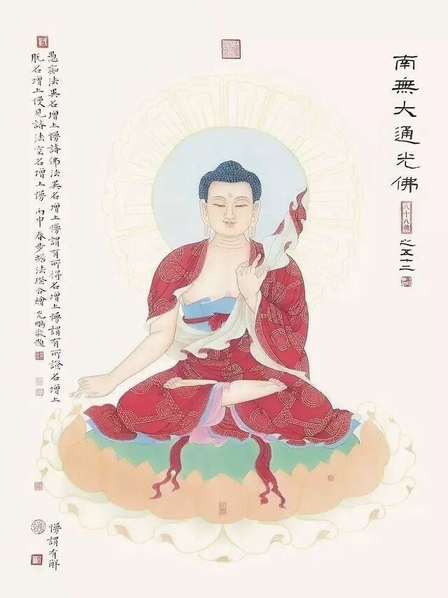 大通光者,谓觉体日大,法身德也,觉用日通,解脱德也,觉相日光,般若德也,三德圆融,不可思议,故名大通光也。