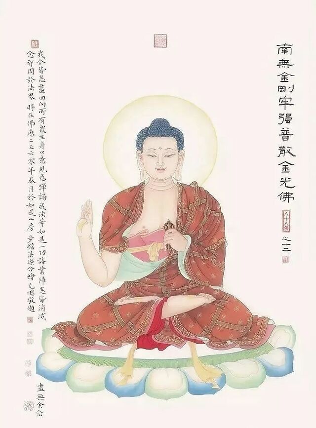 金刚牢强普散金光者,金刚性最坚利,不为物坏,而能坏一切物,喻佛不为烦恼破坏,而能破坏一切烦恼,故名金刚牢强也;金体极明,不为物照,而能照一切物,喻佛不为无明暗障,而能照破无明,故名普散金光也。
