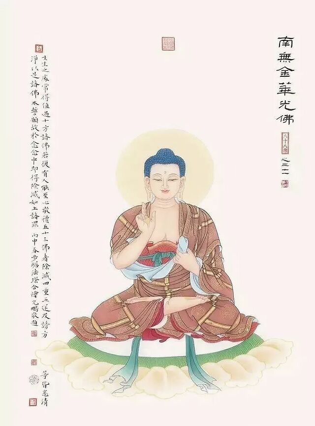 金华光者,谓戒心发行,喻如金华,离欲清净,喻如金光,金表法身,华表解脱,光表般若,三德理圆,故名金华光也。此显如来清净光明,无边相好,皆以持戒而得庄严成就,故律云:“诸佛证菩提,独觉身心净,及以阿罗汉,咸由律行成”。