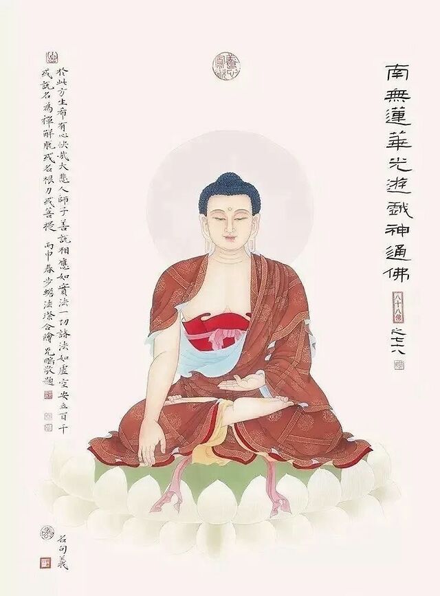 莲华光游戏神通者,华光,表佛智也,谓光虽远照,而本不移,以喻如来游化诸方,不离华光三昧,皆以神通变现,故名莲华光游戏神通也。