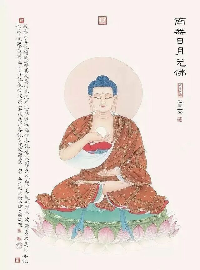 日月光佛者,谓以根本智证理,以后得智断惑,情忘理显,心地开明,光同日月,故名日月光也。