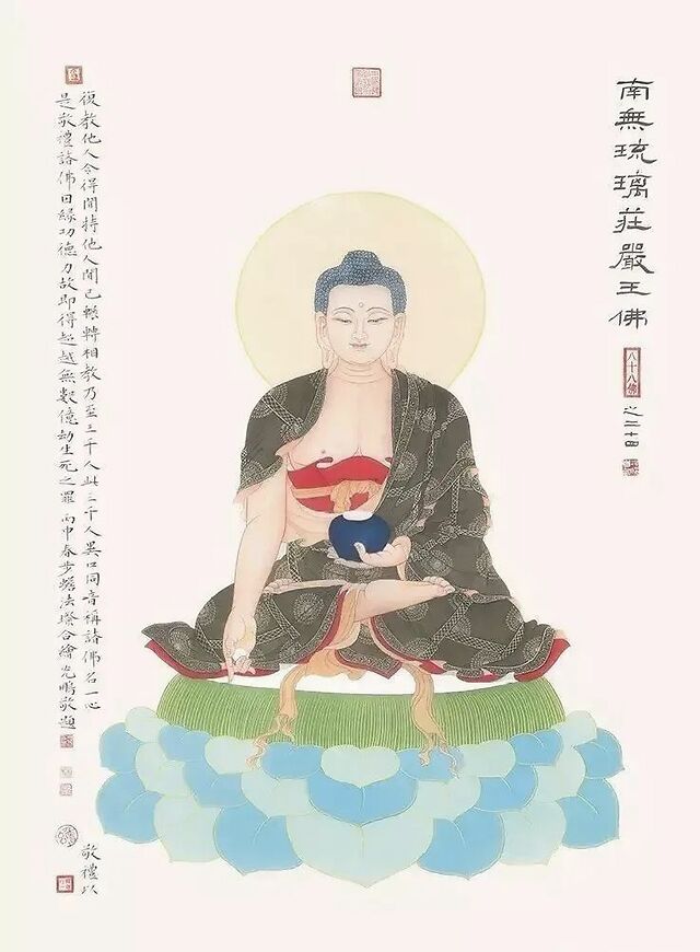 琉璃庄严王者,梵语琉璃,此云青色宝,乃七宝中之最胜者,佛身清净,故日琉璃,内外明照,故日庄严,不为群魔之所障蔽,故名琉璃庄严王也。