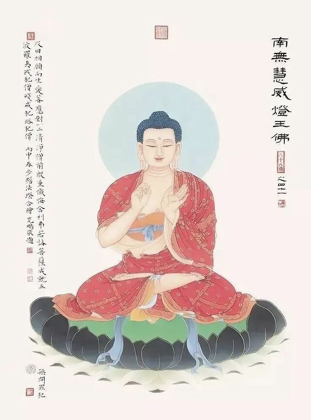 慧威灯王者,以根本智,起后得智,现大法威,故名慧威,犹如灯王,传耀无尽,众生蒙光而得自在,故名慧威灯王。