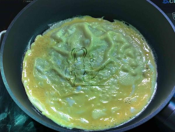 6.平底锅中加油烧热,倒入蛋液摊成薄蛋饼