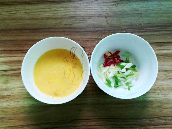 5.鸡蛋打散待用,葱姜蒜辣椒切好备用