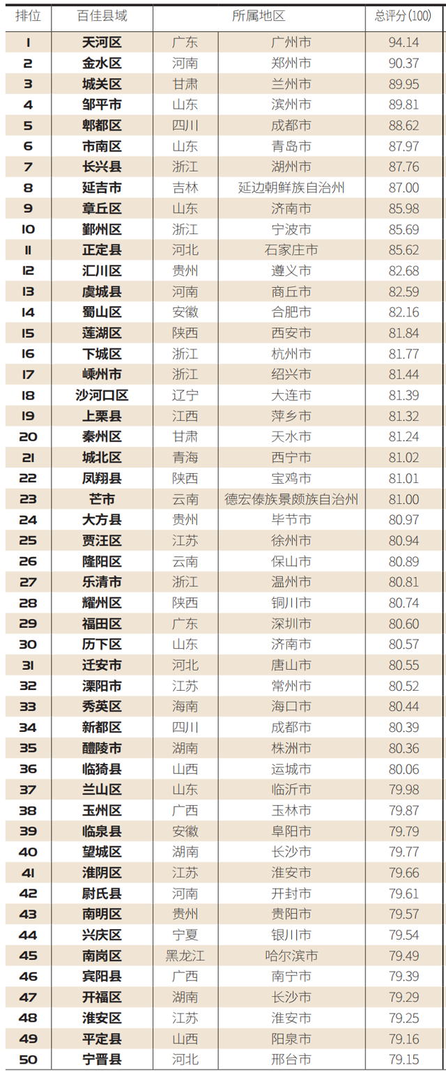 结果显示,位列“2020中国医疗服务百佳县市”前十名的分别为:广东省广州市天河区、河南省郑州市金水区、甘肃省兰州市城关区、山东省滨州市邹平市、四川省成都市郫都区、山东省青岛市市南区、浙江省湖州市长兴县、吉林省延边朝鲜族自治州延吉市、山东省济南市章丘区、浙江省宁波市鄞州区。