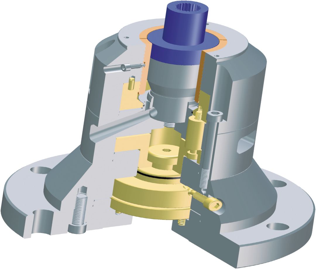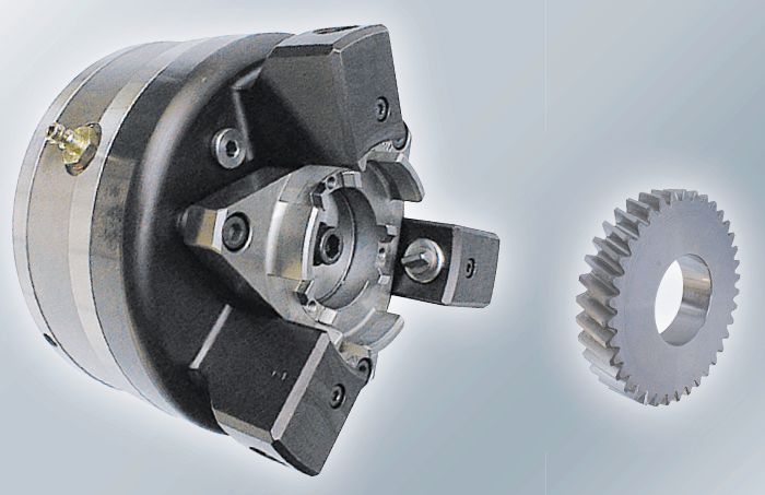 在普通车加工中,齿轮毛胚件通常被夹持在垂直或者水平的车削机床上。对于自动夹持的夹具,绝大多数不需在主轴另一边加装辅助稳定装置。