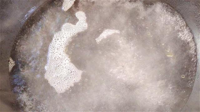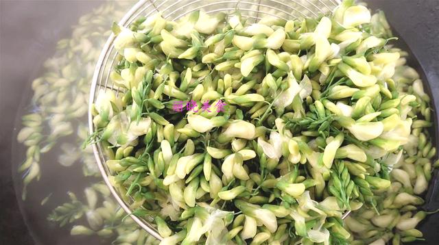 3、水开放入洗净的槐花,槐花焯水40秒左右,不要太长时间,不然煮烂影响口感。