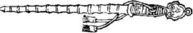 成书于元末明代的《水浒传》中有着对鞭枪配合使用的生动描写:“寇先锋吃了一惊,便回道:‘你只躲的我箭,须躲不的我枪。’望孙立胸前尽力一枪搠来。孙立挺起胸脯,受他一枪。枪尖到甲,略侧一侧,那枪从肋窝里放将过去。那寇将军却扑入怀里来。孙立就手提起腕上虎眼钢鞭,向那寇先锋脑袋上飞将下来,削去了半个天灵骨。” 在《水浒传》中,孙立挂在腕上配合长枪使用的竹节虎眼鞭就是辅助形短兵器。宋铁马鞭多被当作辅助兵器,和皮马鞭一样悬于腕上,配合枪、槊使用。鞭枪技法为自称小尉迟的呼延赞“挥铁鞭、枣槊。旋绕廷中数回”然而这挂在腕上的铁鞭会不会妨碍其他武器使用呢?解决这个问题的铁鞭要满足两个基本要素:一是铁鞭不必过长,二是悬挂后要贴近腕部。十几年前,我的朋友北京刀友万兄偶获一只竹节鞭,真是让我大开眼界。