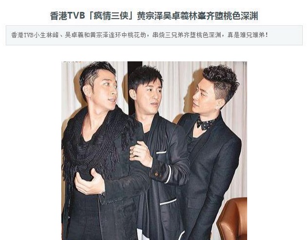 荧幕前,林峯多以正面阳光痴心汉的角色示人,角色魅力的加成,以及轰动一时的「七爱BB」事件。如今大家说到他,都会冠以「痴情公子」的称谓,实则在吴千语之前,他在贵圈和同样以绯闻著称的黄宗泽及吴卓羲被港媒封为TVB「疯情三侠」。