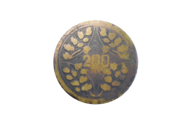此枚中华民国十五年四川造币厂造贰百文铜币,直径:3.5cm重:12.7g,此钱币正面圆环内铸有“川”字样,圈外上面铸写“中华民国十五年”七字,下方铸写“每枚当贰百文”六字,左右两侧各饰一朵四角星花纹;钱币背面中间有“200文”字样,四面为半圆形图案,图中有花叶,铸造规整,使用痕迹明显,文字隐约可见。