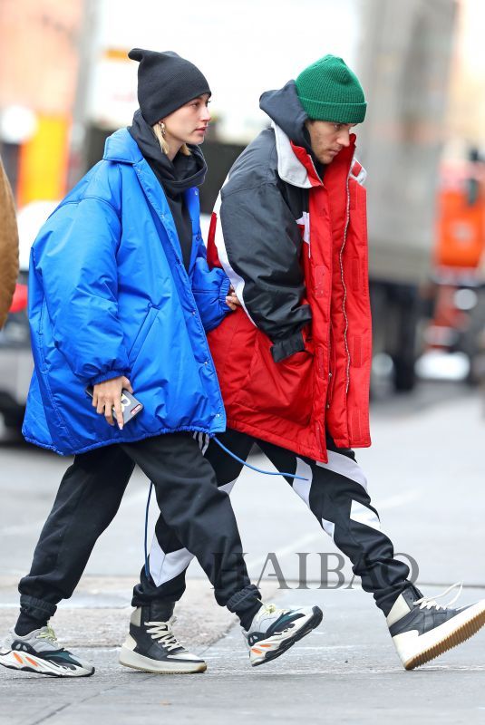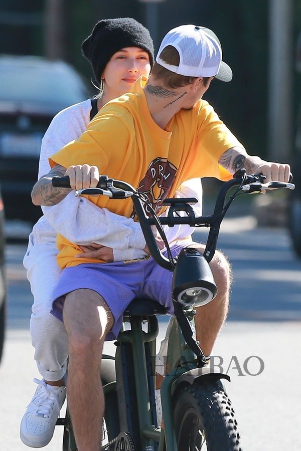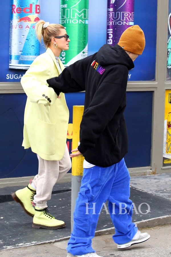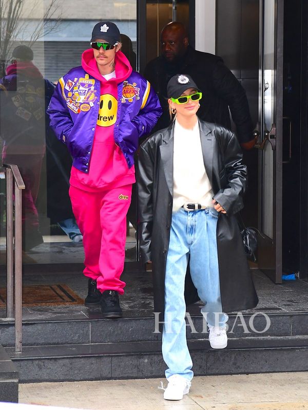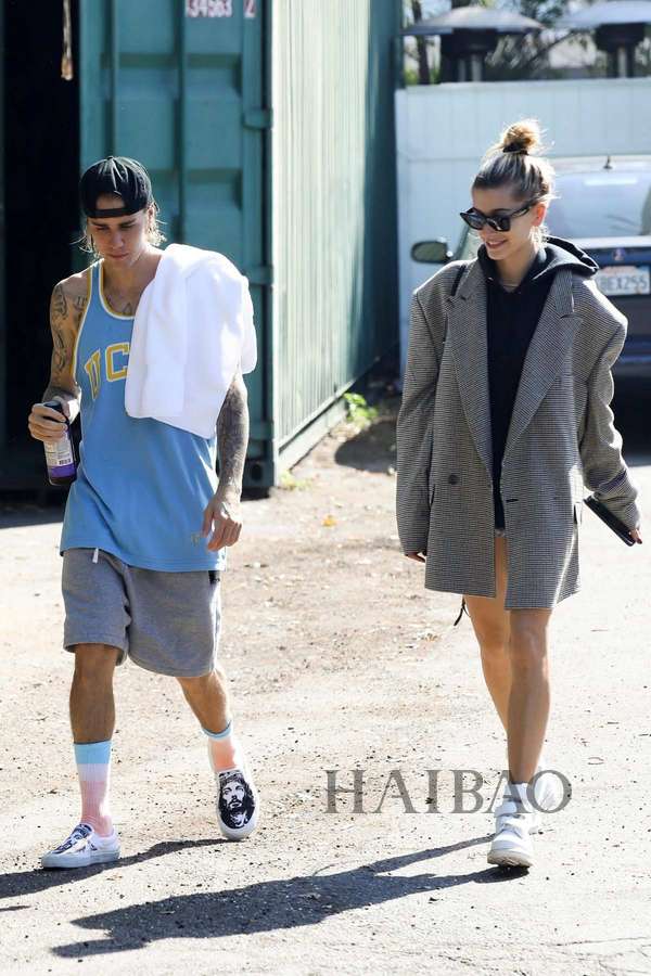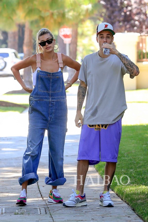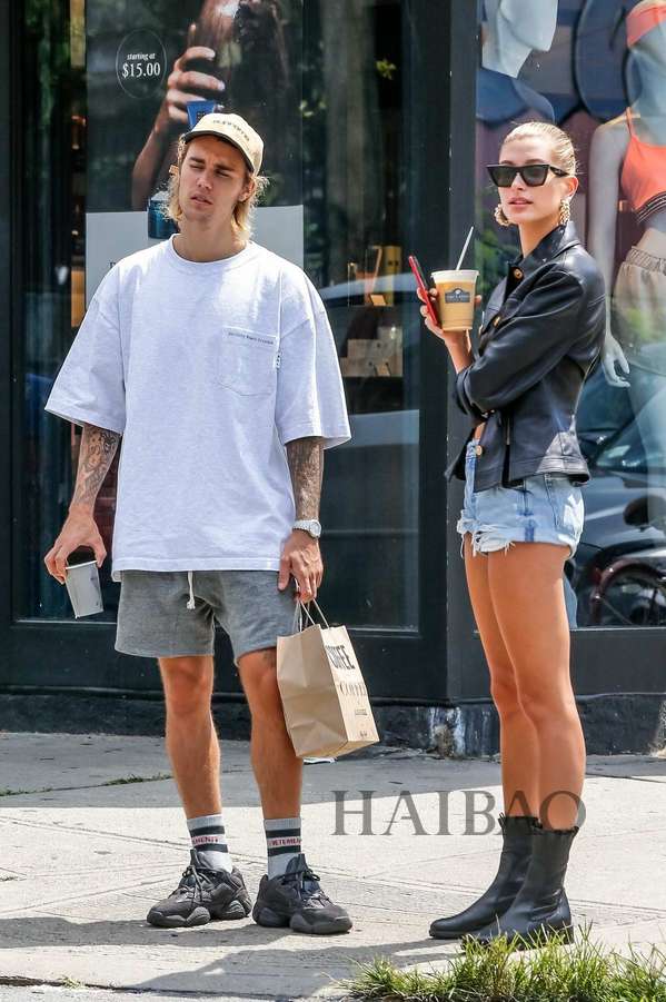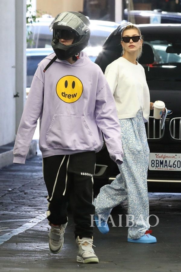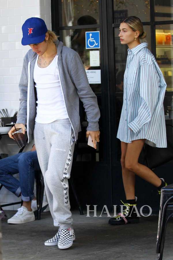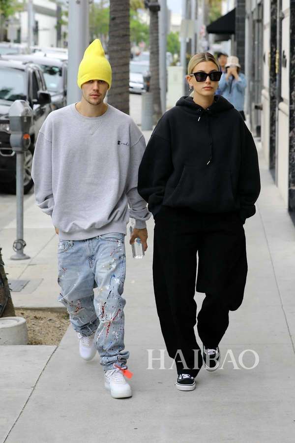 多数时间,两人的穿搭都已舒适为主,帽衫、热裤和运动鞋的黄金搭档他们最爱,但是小两口又各有侧重,比伯在运营自己的品牌,所以一有机会就要抓紧来打广告,好在这个品牌的单品都很休闲,广告才不会来得太硬。