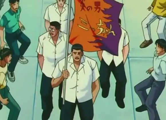 所以从湘北海南的比赛开始,德男等人第一次出现在看台上,为三井加油,那时他们身上还有脱不下去的不良气息,毕竟他们是出了名的不良集团。而到了湘北和陵南的比赛中,德男等人则化身三井专属的啦啦队了,都拉起大旗了,搞的三井也是尴尬了一阵。