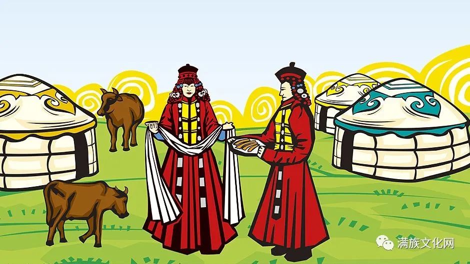 要说蒙古人最普遍的见面礼是和藏人一样,送哈达。传说1260年西藏法王八思巴会见元世祖忽必烈后,回西藏带回了第一条哈达。