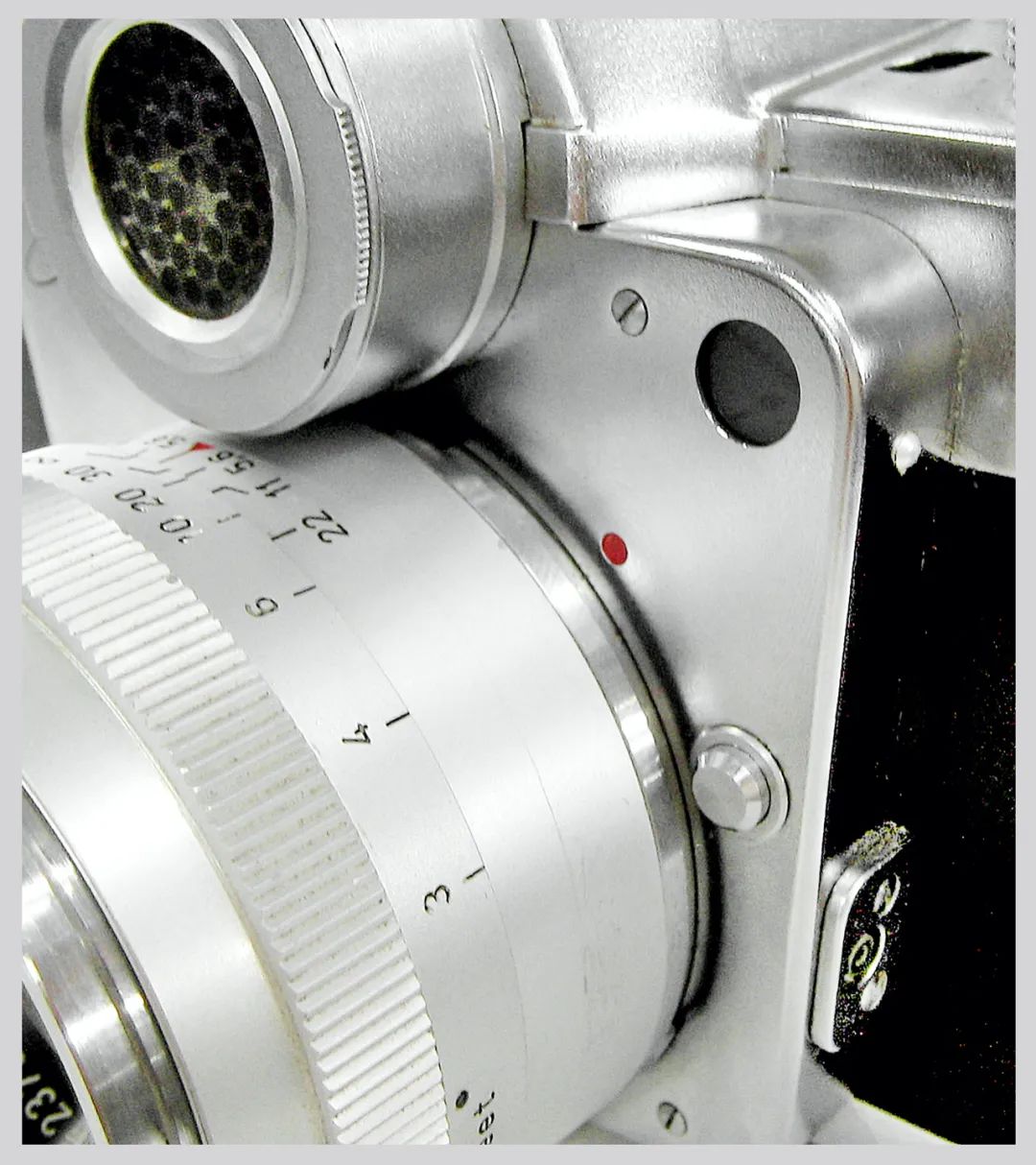 但这与我们熟悉的现代相机上的“收缩光圈测光”不是一回事儿,它不是测量通过镜头的光线(TTL),而只是测量“独眼”外的机外测光数值。