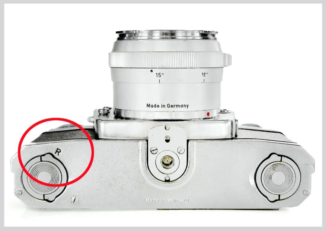 哈苏、禄莱 6008、玛米亚 RB67 等 120 专业相机的重要功能之一就是能换胶卷后背,这一功能在当年的135相机中十分少见。不过“独眼龙”能够随时、随地、随意地更换胶卷后背(图15)。