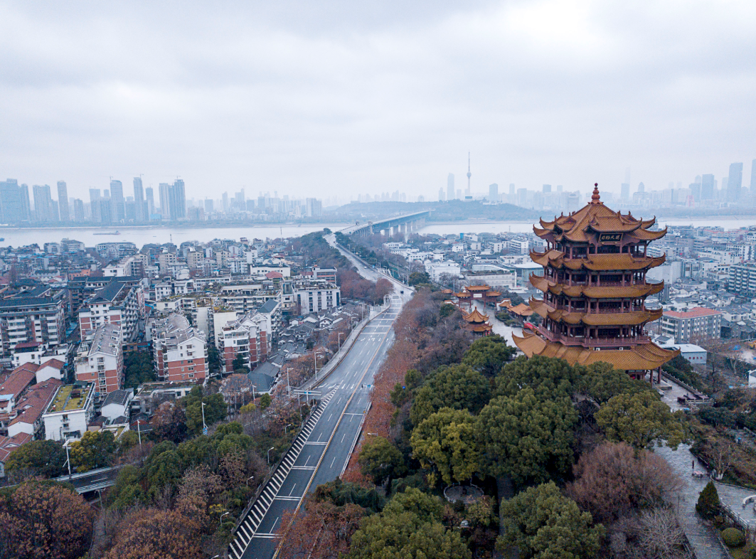 2020年1月26日拍摄的黄鹤楼(无人机照片)。新华社记者熊琦摄