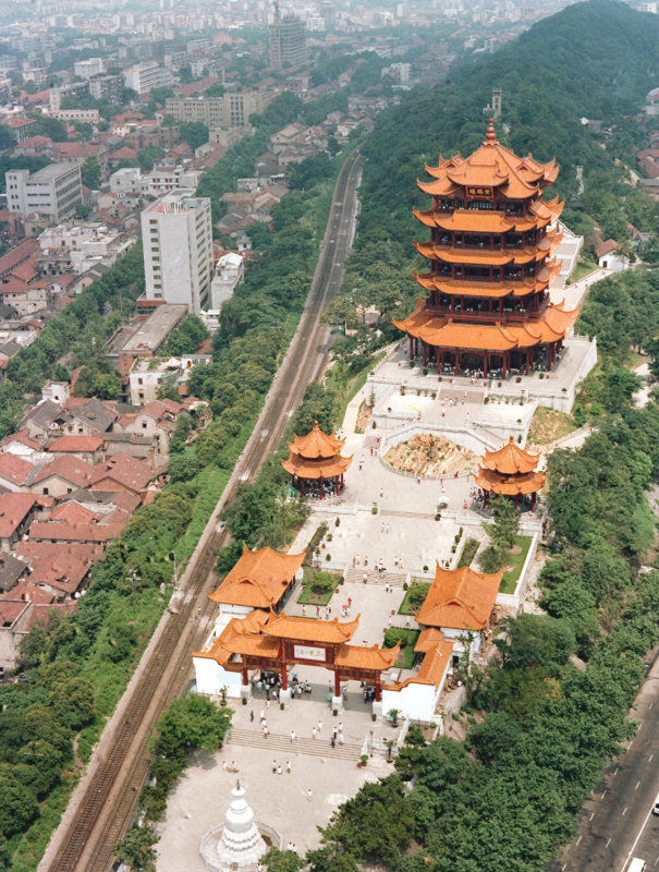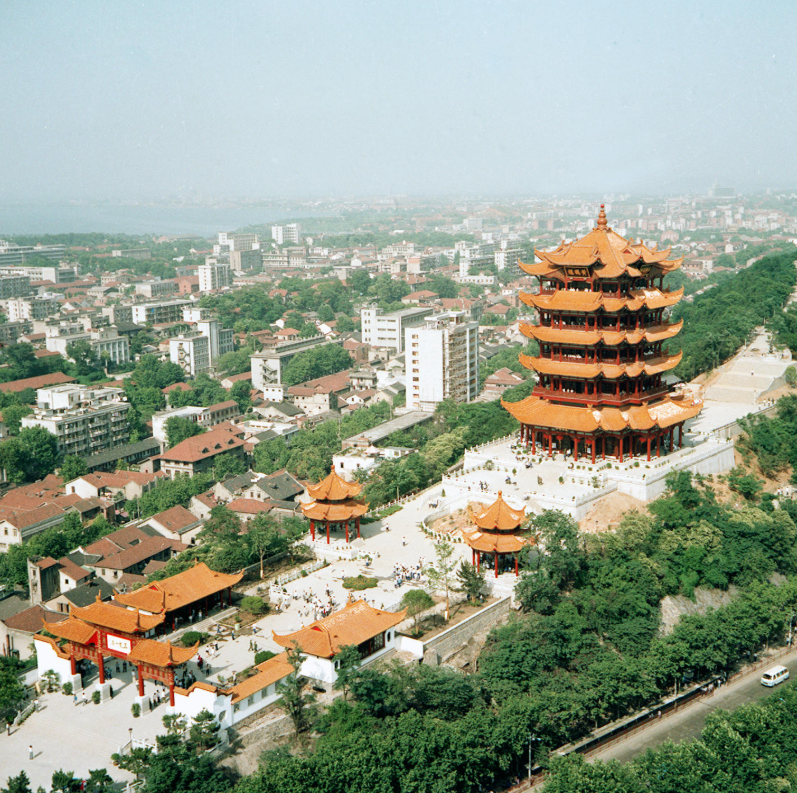 1985年8月31日拍摄的黄鹤楼建筑群全景。新华社记者于澄建摄