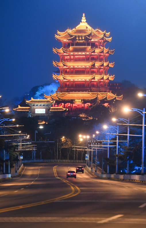 2月23日晚拍摄的武汉黄鹤楼夜景。新华社记者 陈晔华 摄