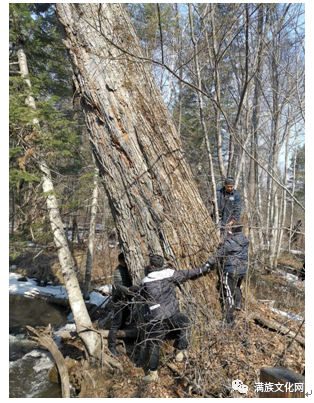 参把头:(虔诚祈祷)山神爷爷多帮忙,保佑子孙性命长,今日进山风头顺,叫俺逮个棒槌王。发财致富天门开,三年盖起大草房,靺鞨玛发来许愿,年年供您猪牛羊……