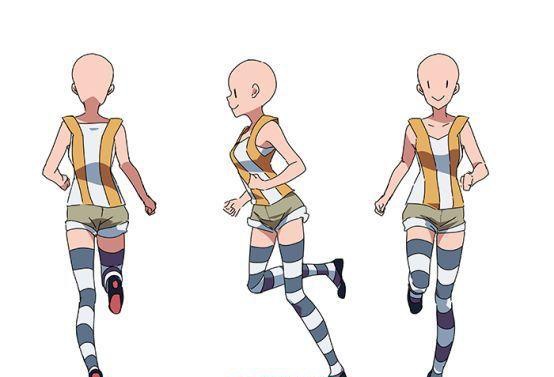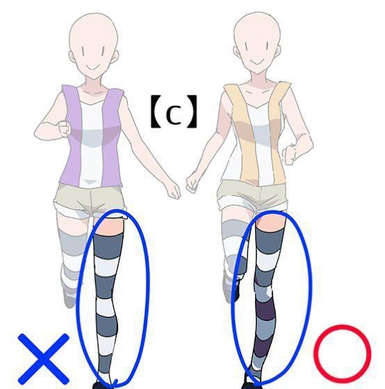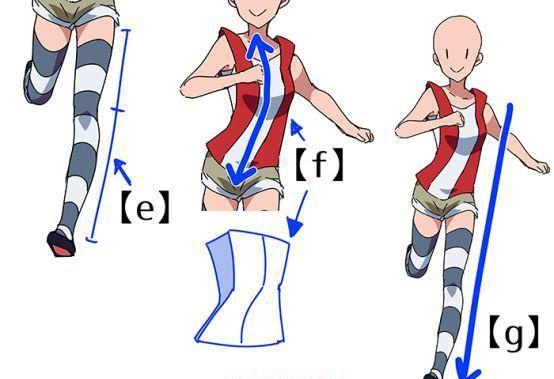 c、基本上,跑步的图使脚垂直这样会让人搞不清到底是往哪边走,所以不行。这个时间的腿是有点弯的。这个文章最初的图片中出现的失败例子(紫色衣服)的问题是“腰部没有扭动”“脚是垂直的”这两点。像这样,即使是“奔跑”的形式,不同的姿势,作画的要点也完全不同。