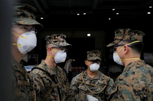 图为疫情下的美国士兵