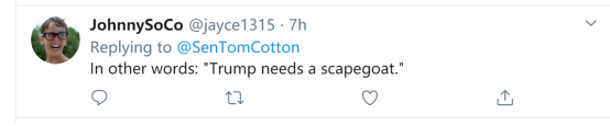 科顿企图将美国抗疫不力的锅甩到中国头上的行为,让网友也看不下去了。↓