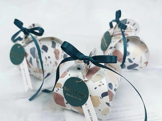 有的造型别致,有的纹络极具质感,让喜糖盒显得更为雅致。