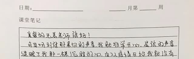 “无恙警官,在没进监狱之前,我曾听过无数种动听的声音,也曾看过许多篇感人的文章,但却没有任何一种声音、一篇文章能像此时的您这样让我激动过,我从来不知道世界上还能有这样一种声音能让我浮燥不安的心在瞬间安静。无恙警官,谢谢您,谢谢您的出现,温暖了我此时的心,让我感受到了一丝温情的光!”