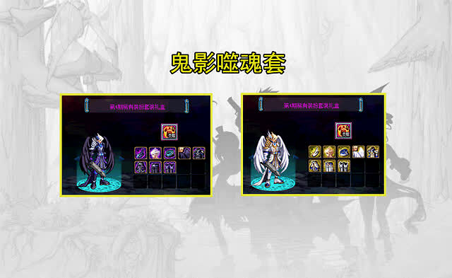鬼影噬魂套有两种,分为混沌(黑色)和光明(白色)。这套天空最大的亮点在于一对“羽毛翅膀”,跟传说中的天使之翼很像,导致整体外观的“颜值”很高,受到很多玩家的喜爱。