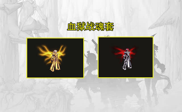 血狱战魂套有两种,分为辉光(金色)和黑曜(黑色)。辉光整身都是金灿灿的,就像“黄金甲”一般;而黑曜则显得比较低调,也有另一番意味。