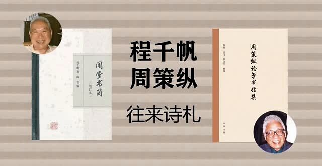 近日中华书局出版的《周策纵论学书信集》收录了周策纵致程千帆书信两通、悼诗一首。其中第一通信,已见于《程千帆沈祖棻学记》。又,《闲堂书简》收录了程千帆致周策纵书信四通。现将各处所载二人来往书信及诗词略做汇集,刊布于此。