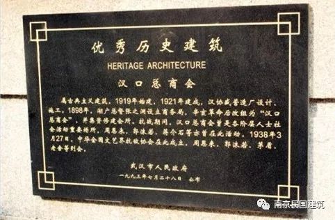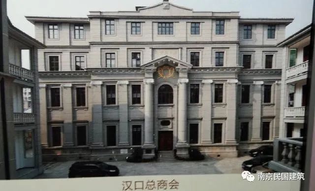 汉口总商会大楼是武汉商业发达的标志性建筑,旧址占地面积约400平方米,共四层,砖木结构,西式古典主义建筑。立面构图强调竖向,外墙采用仿麻石粉刷,正面入口壁柱做西式古典柱式,入口上部饰山花线角,整体建筑端庄典雅。