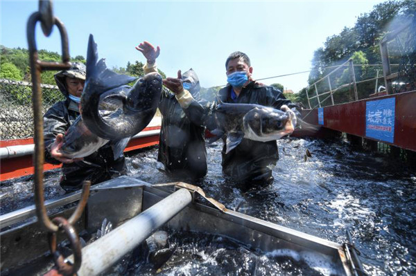 “因为是国家级风景区,所以,这些鱼类不喂饲料和激素,完全是自然生长,当然,生长得也极为缓慢,我们用的都是六斤往上的大雄鱼,这个重量的大雄鱼,要长到四年以上才行。”金功伟说。