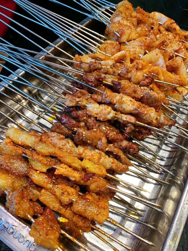 女士最喜欢的烤鸡翅也有好几个口味,烤干豆腐都是夹着馅的,小实蛋都是纯的,特香。