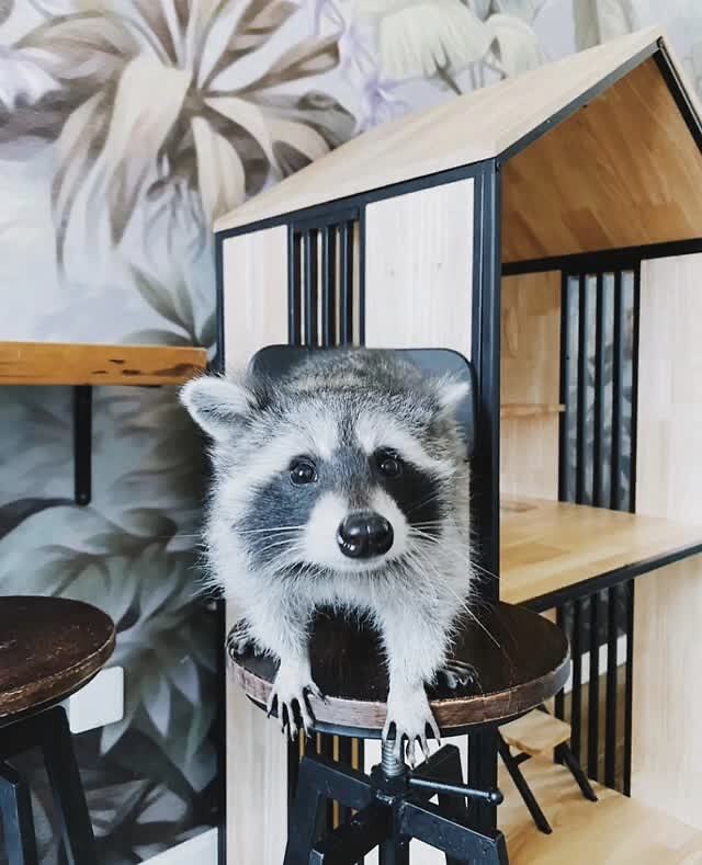 店里有 6 只小浣熊,老板说它们都来自加拿大。”干脆面“们摸起来毛茸茸的,手感非常舒服。其中有两只几个月大的幼崽浣熊,可以抱在怀里,小浣熊的肉垫会搭在你的胳膊上,非常治愈。