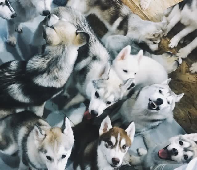 751 的哈哈哈士奇,是一间空间很大的哈士奇咖啡馆。 一进门就有大大小小的二哈涌向你,摇头摆尾的求摸。 店内每个时段都有 20 只哈士奇,工作人员会组织狗狗们与顾客拍合照。