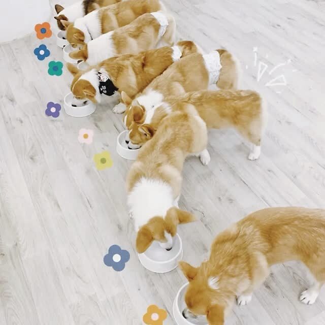 店内有 12 只柯基营业,最小的只有四、五个月大。每一只小狗都佩戴小方巾,写着自己的名字。店内空间非常大,没有传统狗咖局促感,可以看到狗子在里面肆意的玩耍。