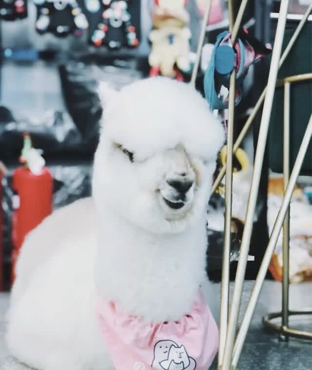羊驼班尼是店内的小明星,性格很温顺,毛发柔软,手感极佳。摸头时会发出软萌的叫声,尤其喜欢客人们拿着草投喂。