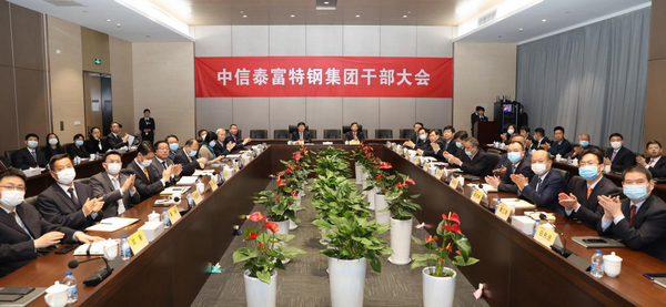 4月22日,中信泰富特钢集团股份有限公司召开干部大会。中信泰富董事长、总裁曾晨先生宣读任命决定并讲话。中信泰富特钢前任董事长俞亚鹏先生发表讲话。新一届中信泰富特钢董事长钱刚先生、中信泰富特钢总裁李国忠先生、中信泰富特钢常务副总裁王文金先生分别做表态发言。中信泰富常务副总裁、中信泰富特钢副董事长郭文亮先生主持会议。