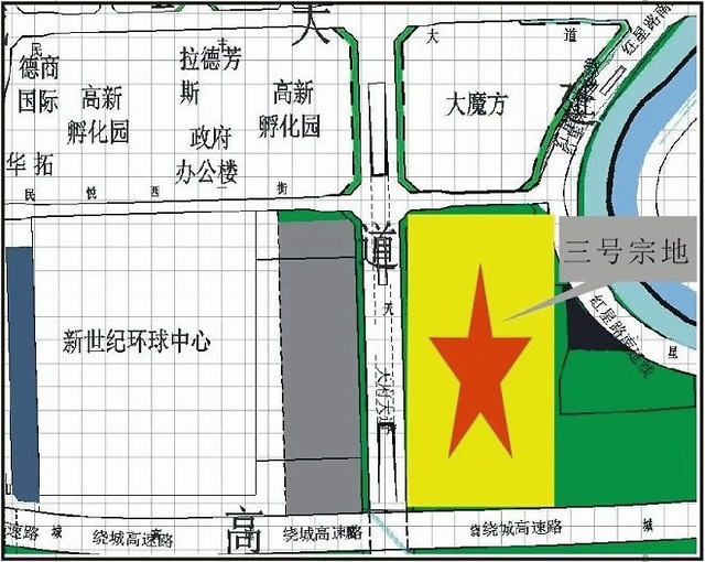 成都SKP所在位置,是近年来成都高速发展的高新区,而其对面就是四川省、成都市两级政府打造世界现代田园城市的重大项目环球中心。